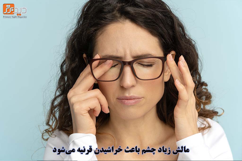 طبق گزارش آکادمی چشم پزشکی آمریکا مالش چشم ممکن است منجر به یک نتیجه ناخوشایند شود: زخم قرنیه. این حالت بسیار دردناک است. به مرور زمان، مالش چشم به پلکها آسیب میزند و پوست نازک حساس اطراف چشم را تحت تاثیر قرار داده و در نتیجه باعث پیری زودرس آن بافتها و حلقههای زیر چشم میشود.